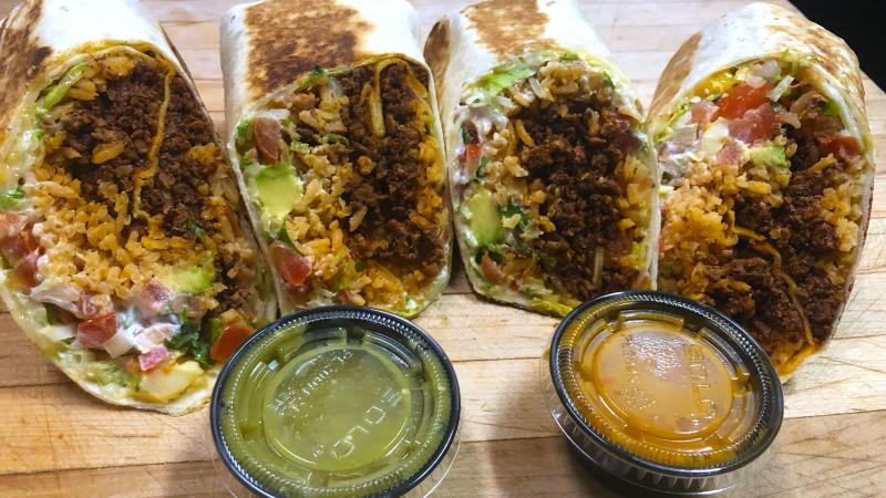 Kash Burrito $13.50 Grilled chicken, rice, black beans, corn, guacamole